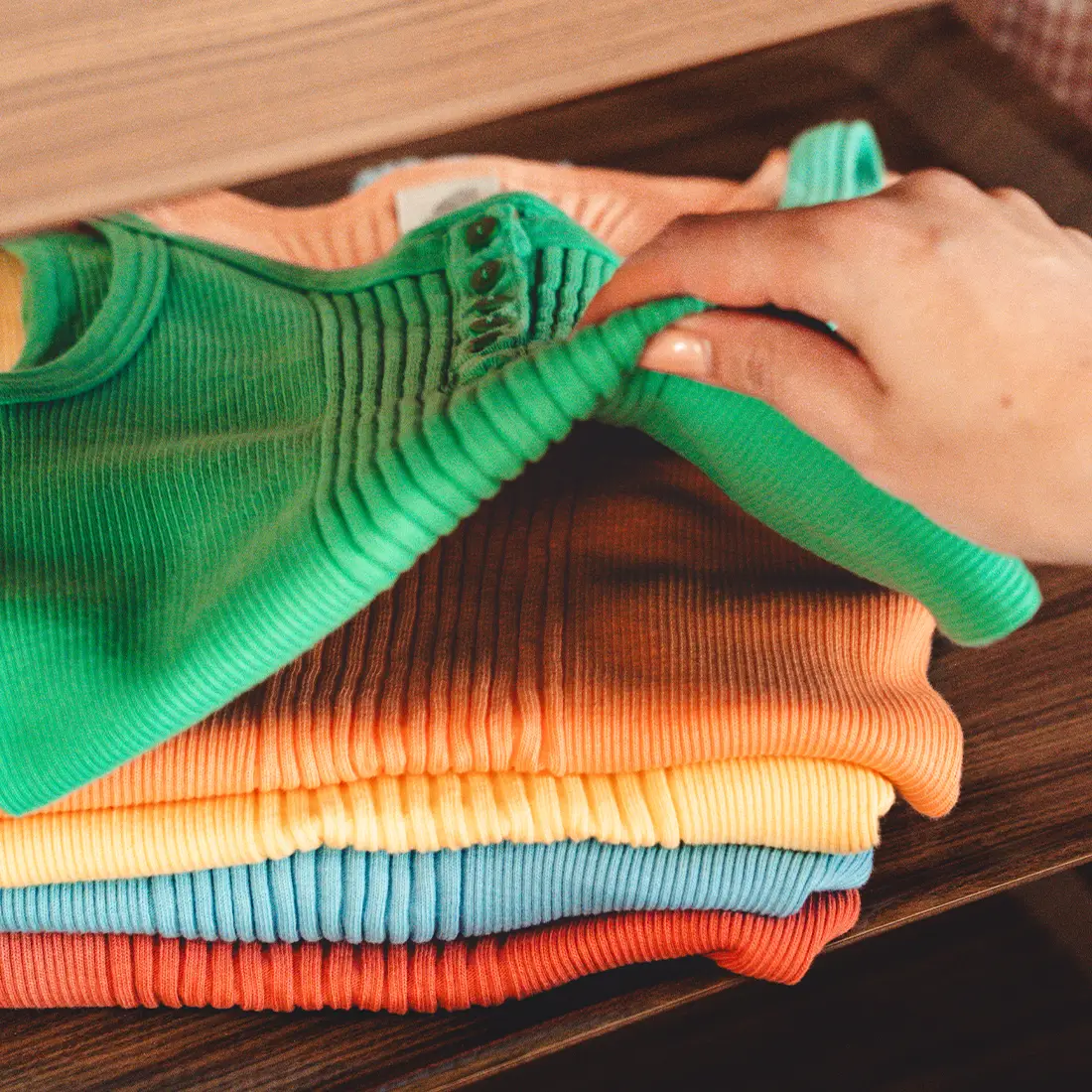 Chaque côte doit être soigneusement comptée et leur alignement vérifié avec exactitude. Par la suite, le produit est préparé en base écrue avant d’être immergé dans des bains de teinture à 90°C. Ce traitement confère à la matière un volume accru et un confort supérieur. Grâce à cette méthode, le produit conserve sa forme et sa texture dans le temps.