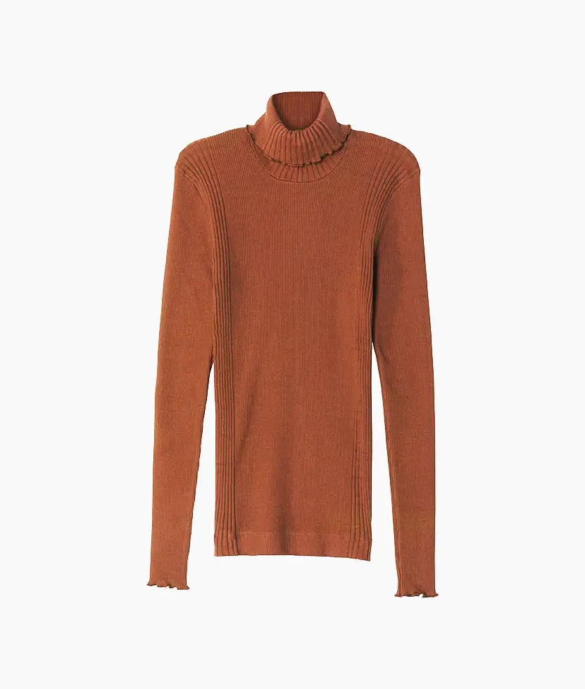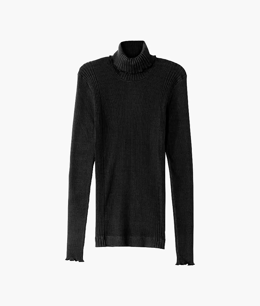 La matière est tiricotées sur d’anciens métiers tubulaires. Ces machines uniques permettent de créer des tricots sans couture, évitant ainsi au produit de se déformer, ce qui garantit une stabilité et une durabilité exceptionnelles. Ce procédé de tricotage exige une expertise et une précision pour atteindre un haut niveau de finition. Le montage des pièces est ensuite réalisé quasi artisanalement.
